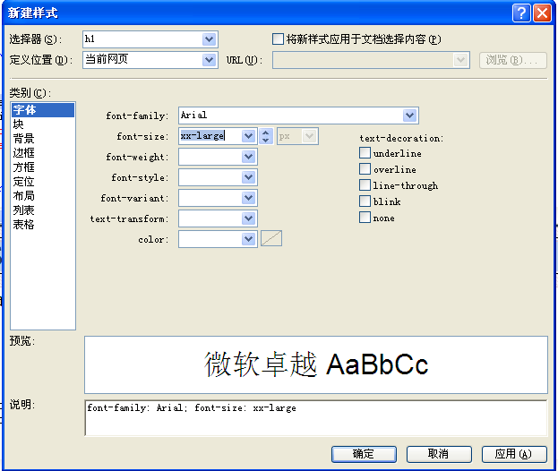 将“新建样式”框中的“选择器”值设置为“h2”。