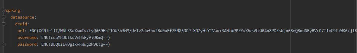 4.使用jasypt 的解析规则,把加密完后的数据替换配置到 yml文件里: