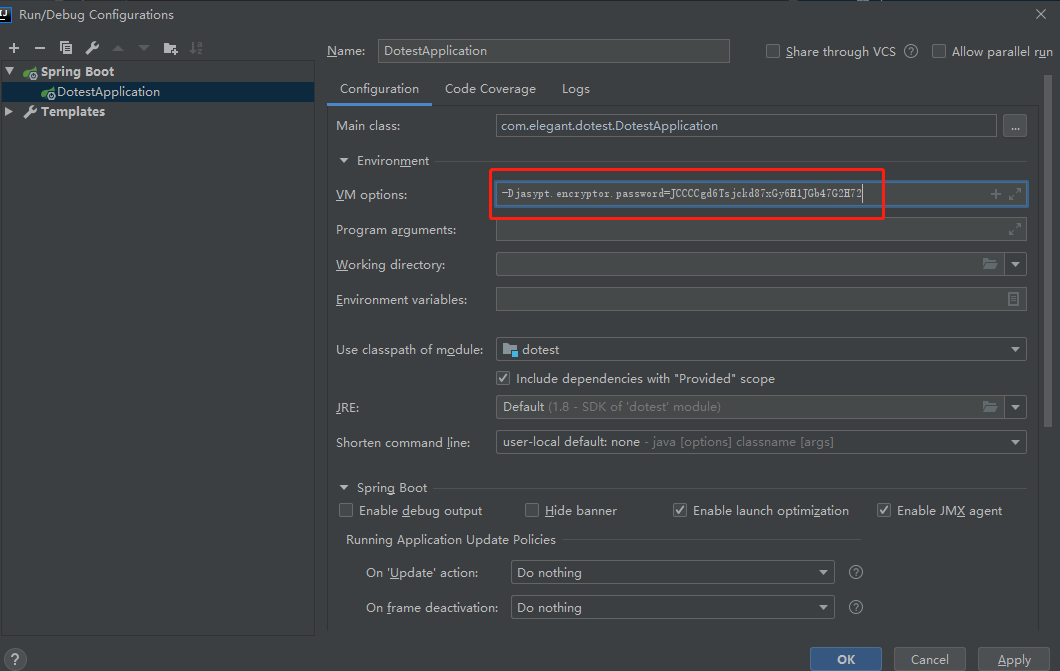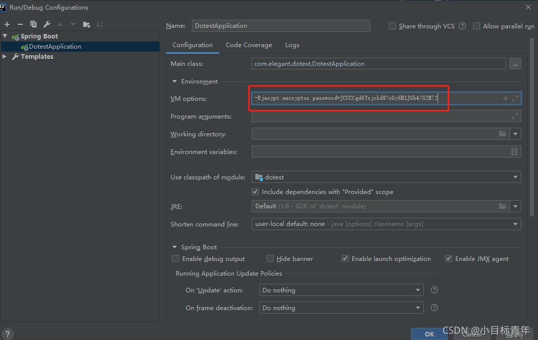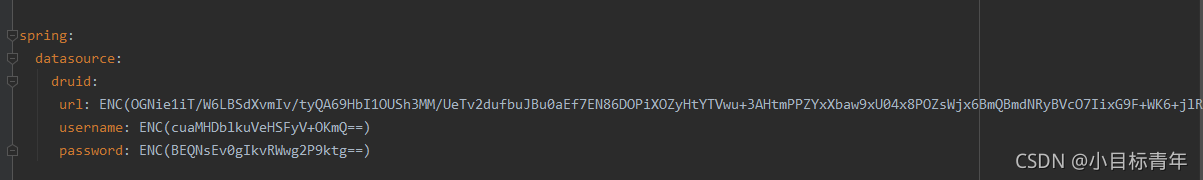 这里注意,如果直接把加密password这样摆在yml里面,其实也是敏感的, 一会文章后面会介绍把这个当作启动参数传入。