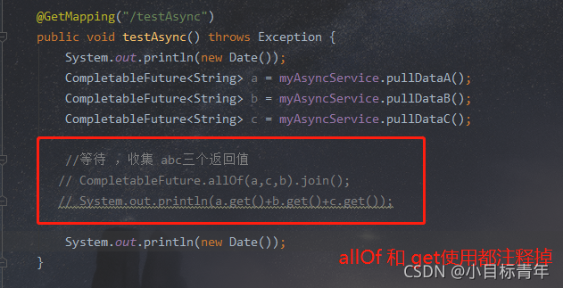 其实,只要你使用到了 返回接收值CompletableFuture ,其实就已经开始触发,并不是一定要用allOf。