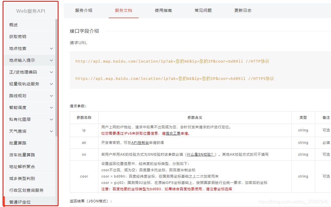 3. ok,可以开始使用了 ,具体API文档可以看官方 :https://lbsyun.baidu.com/index.php?title=webapi/ip-api