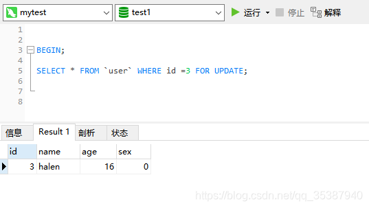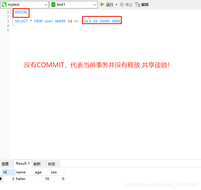 1. 我们先给id=3这数据上个 共享读锁: