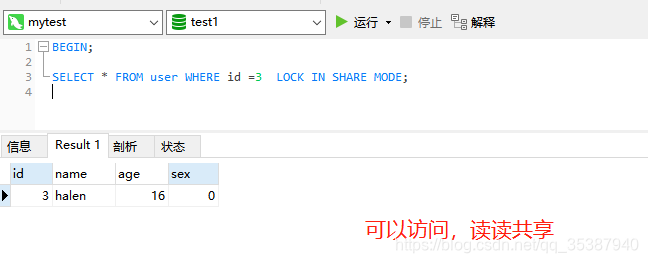 顺便介绍一下如何 加 共享锁(共享读锁) :