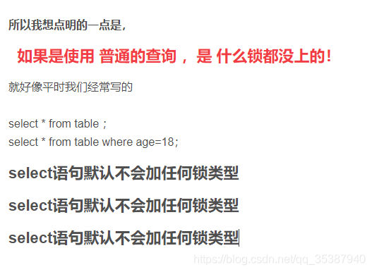 如果是使用 普通的查询 ,是 什么锁都没上的!