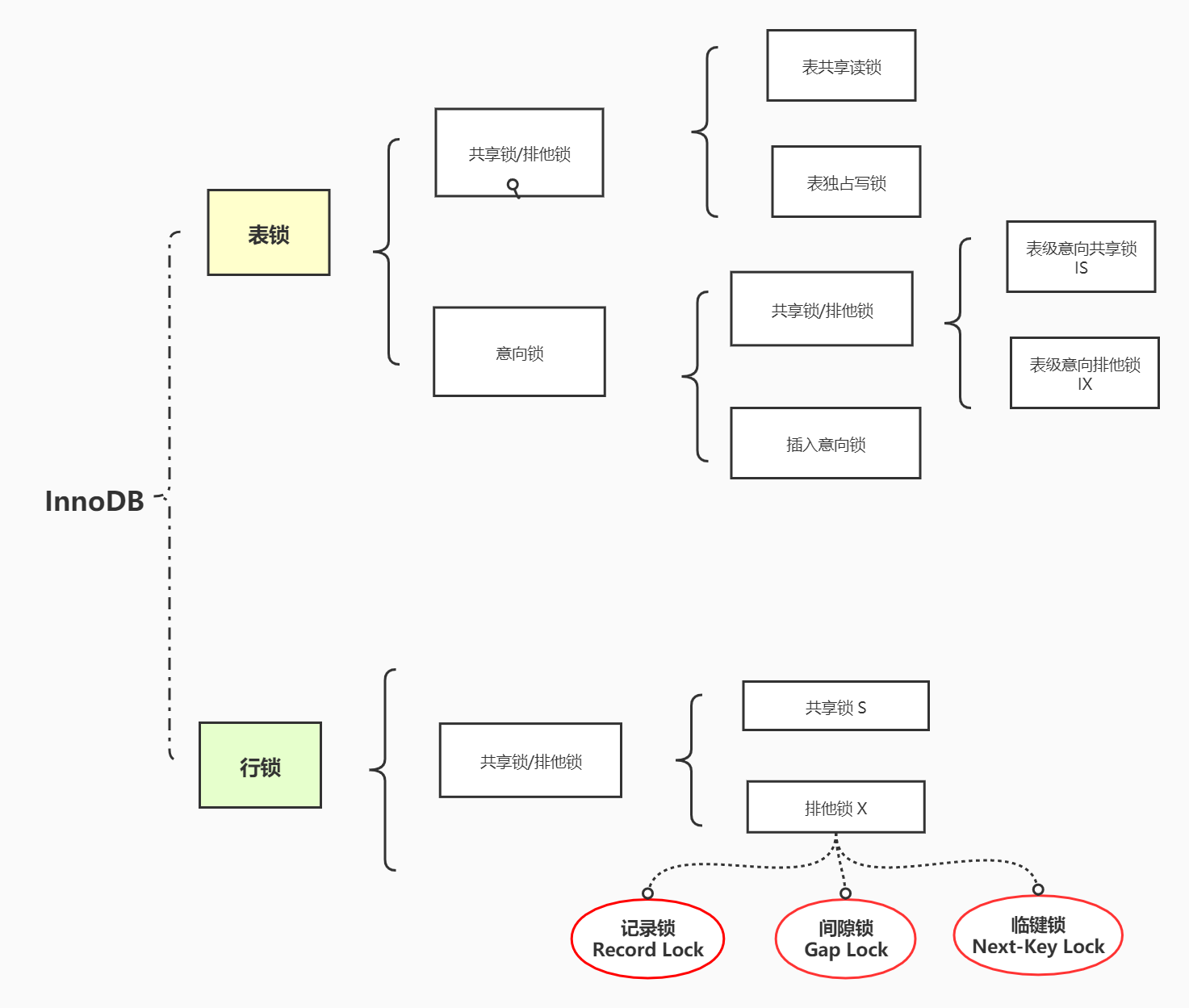 行锁,粒度是最小的。 每次上锁,都是对操作行上锁,但是操作行指的是哪些呢,这个就根据上锁的算法去计算了。