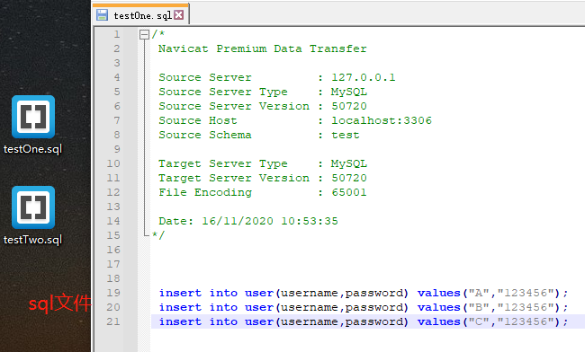 2.2个简单 SQL文件(里面就简单写点插入sql语句):