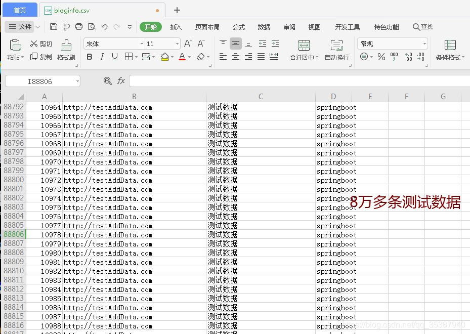对了,我准备了一个csv文件 bloginfo.csv,里面大概8万多条数据,用来进行批处理测试: