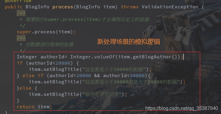 public class MyItemProcessorNew extends ValidatingItemProcessor<BlogInfo> {