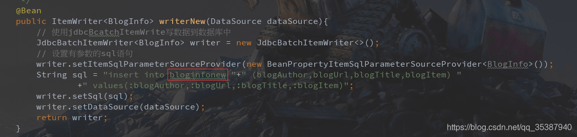 public ItemWriter<BlogInfo> writerNew(DataSource dataSource){