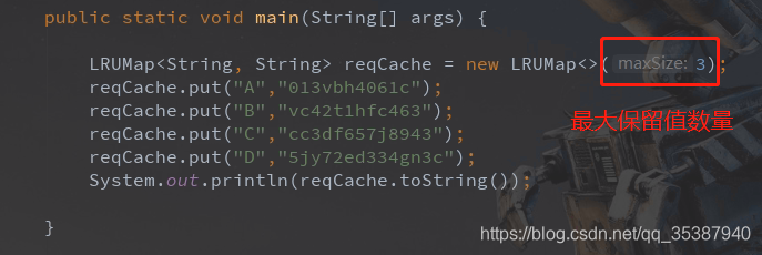 可以看到,我们new了一个LRUMap,设置最大保留的值数量为 3 个。