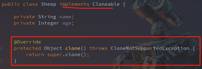 System.out.println("克隆前 sheep :"+sheep.toString());