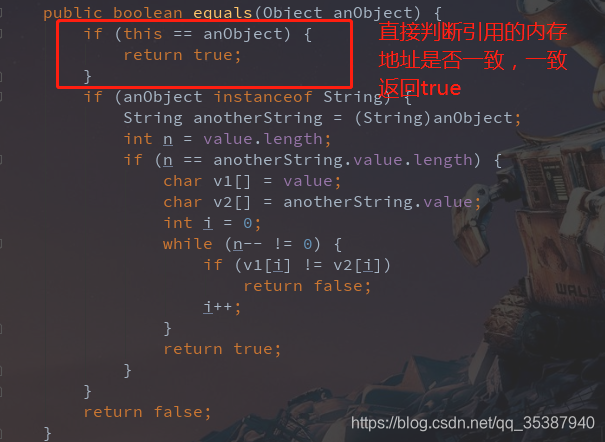 对象的equals比较非常直接,就是引用的内存地址的比较,不一样就false。