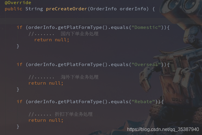 * 后面只需要根据platformId对应好 各个实现类的注解 如: @Component("Domestic") 就可以取出不同的业务实现类