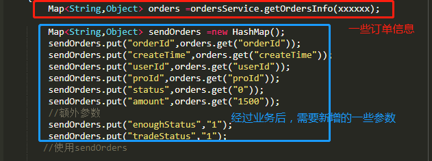 就是从第三方接口那边收到了一些订单信息,然后经过一些业务逻辑之后,需要新增两个额外的参数再去使用。