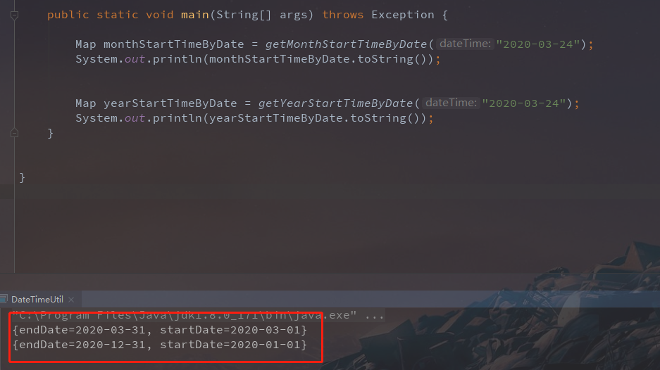 Map monthStartTimeByDate = getMonthStartTimeByDate("2020-03-24");