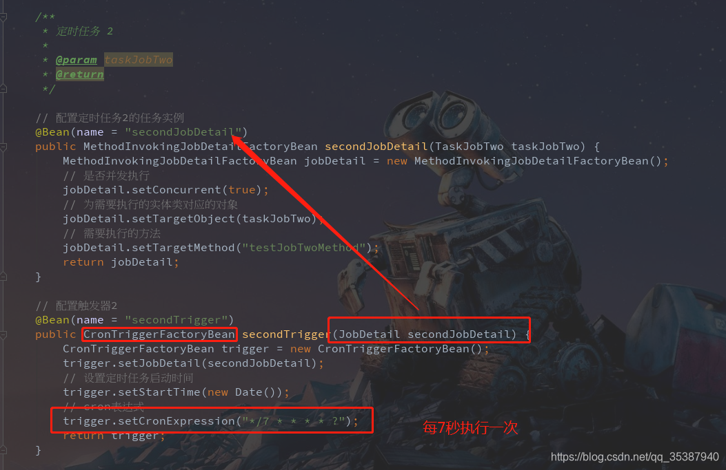 public MethodInvokingJobDetailFactoryBean secondJobDetail(TaskJobTwo taskJobTwo) {