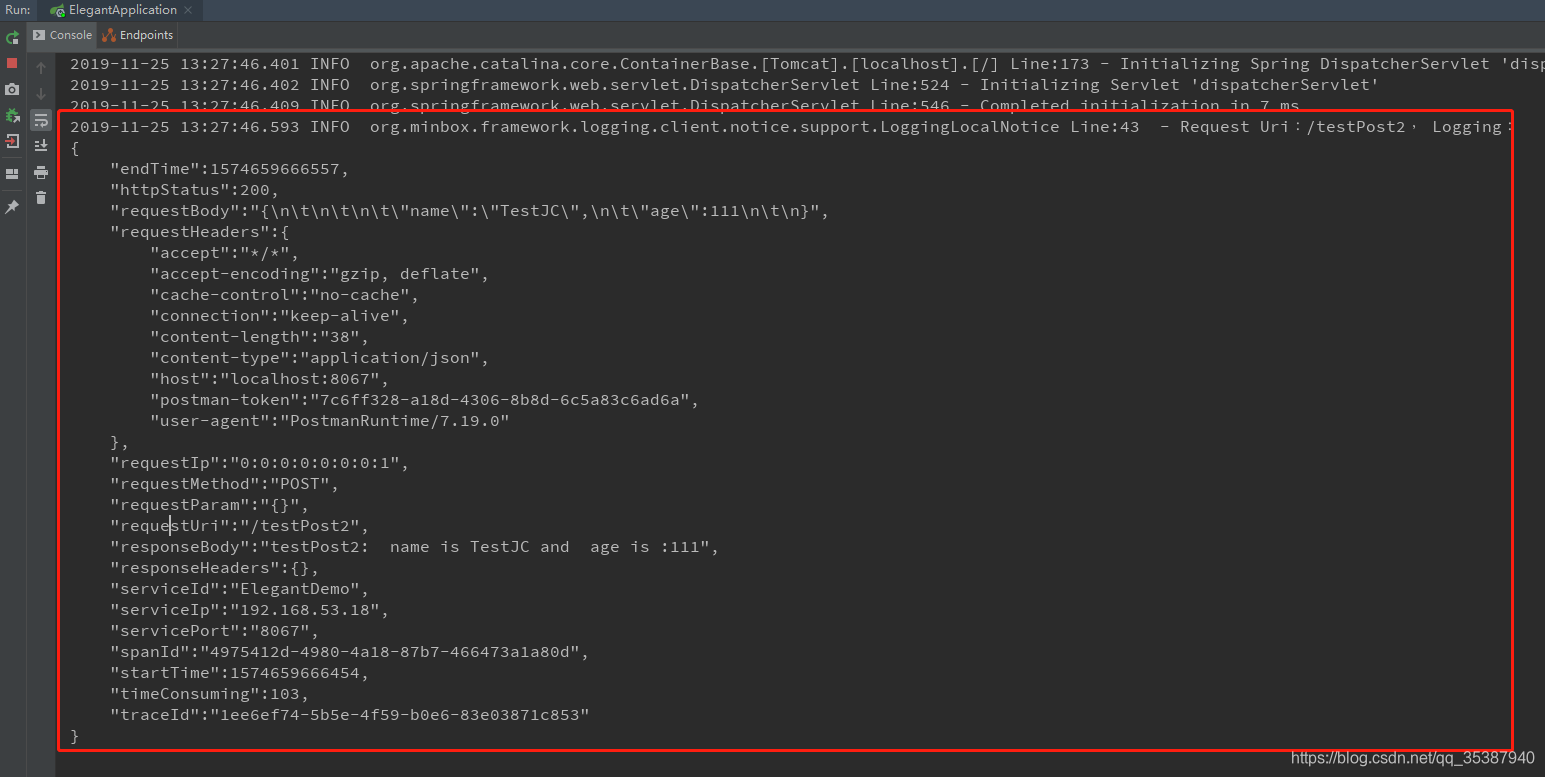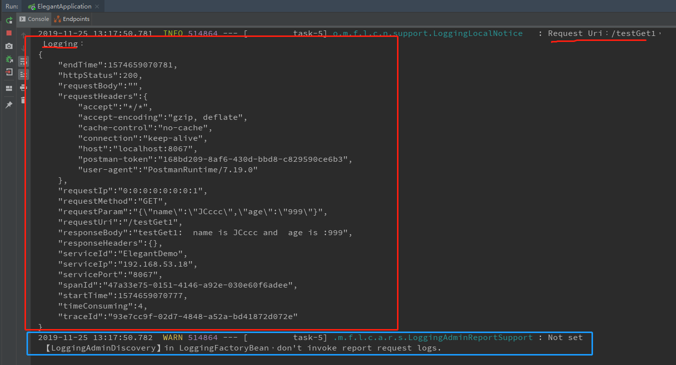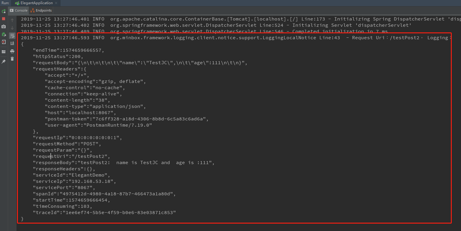 红色框里面正是这次请求的所有数据,都成功监控打印了。