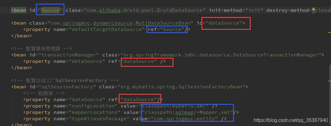 <bean class="com.springmvc.dynamicsource.MutiDataSourceBean" id="dataSource">