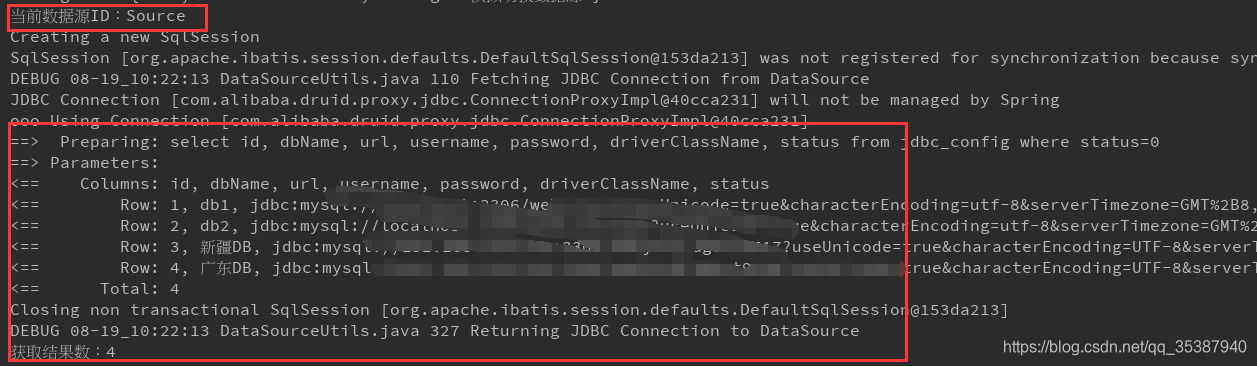 然后读取数据库表jdbc_config里面的多数据源信息是: