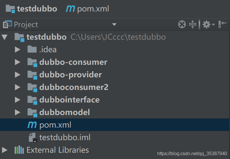 可以看到,我们在provider服务里引入了公共的model、公共的interface、以及重要的dubbo依赖和zookeeper依赖。