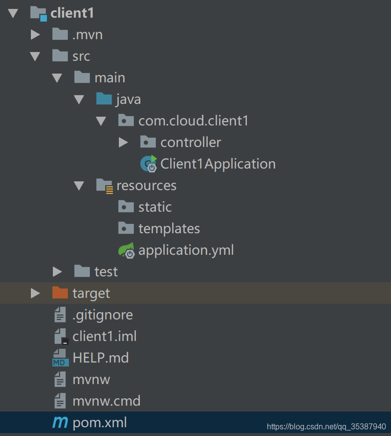 同样,创建一个springboot项目,起名client1作为一个微服务: