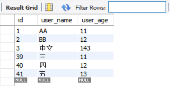 既然是结和MYSQL数据库,那么我们简单看看,表,毕竟刚刚也创建了实体类: