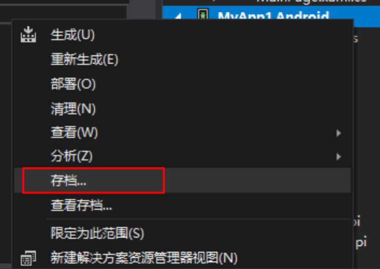 2. 右击Android 项目,选择 存档 按钮