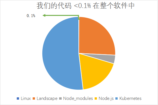 由于大多数应用程序严重依赖于包管理器和开源存储库,因此它们很容易受到来自这些源的恶意或不安全代码的攻击。想象我们交付的软件 Application 是一张饼,我们自己开发的代码仅占其中很小一部分,见下图: