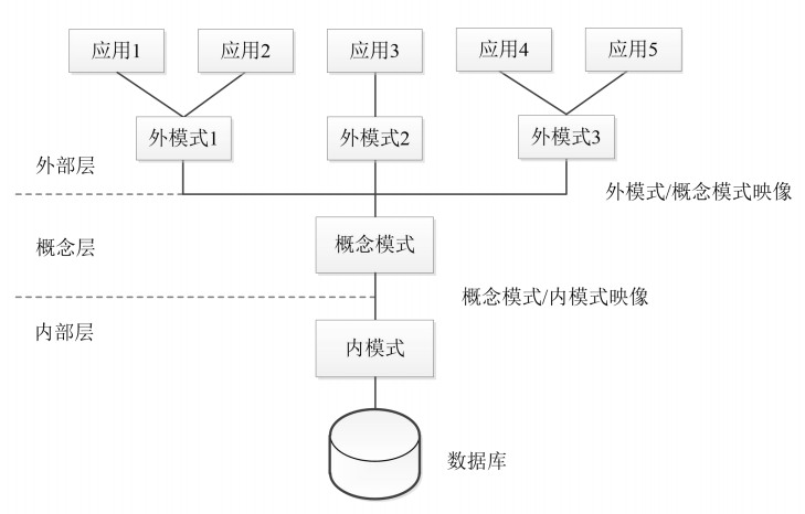 二级映像:在外模式与概念模式之间,以及概念模式与内模式之间存在的映像。