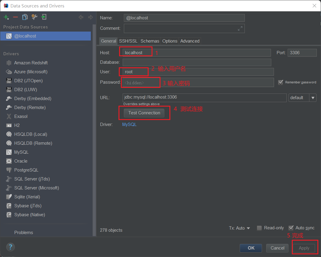 - 如果连接的是本地的Mysql数据库,并且连接使用的端口是3306,那么的url地址可以简写为
