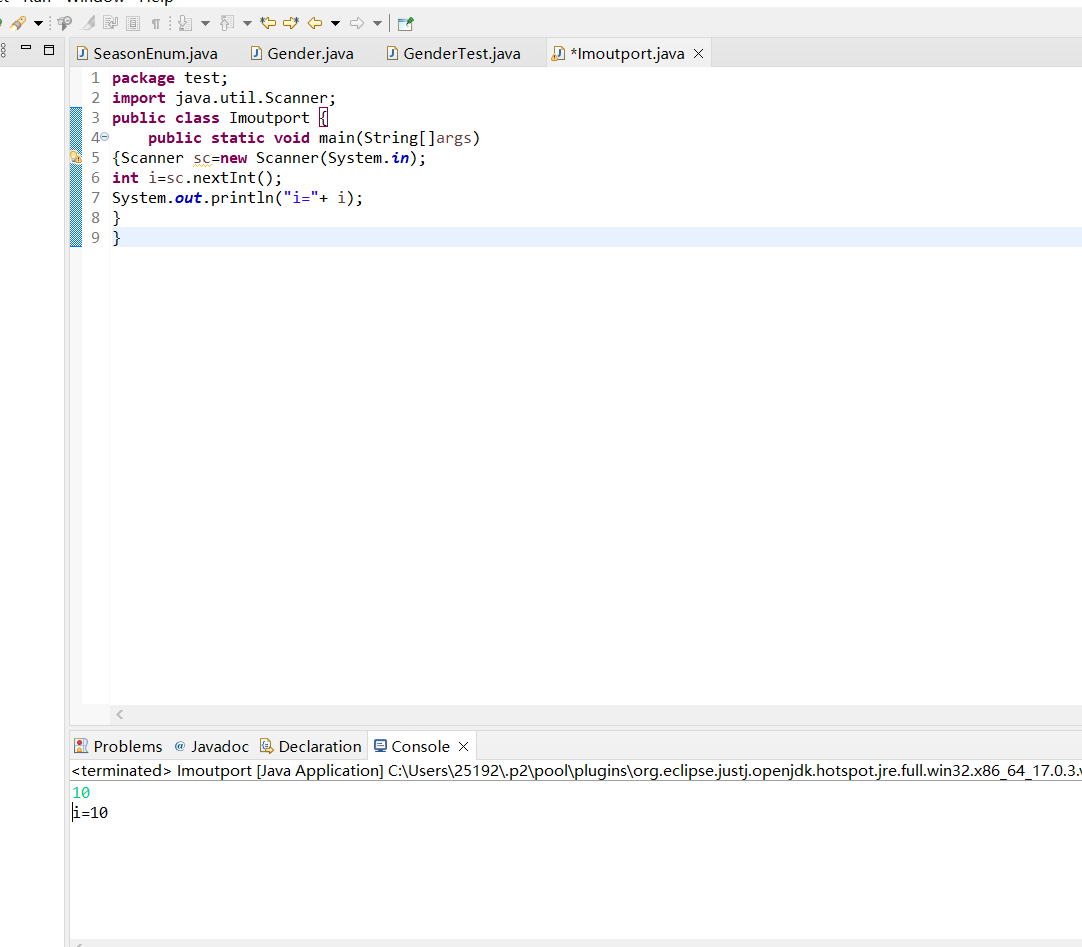 这是Java的输入,之前一直好奇(有搜过,但是不太明百),现在明白了,调用外的一个类,来进行操作,Scanner sc=new Scanner(System.in)写一遍即可。
