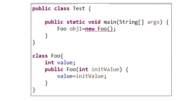 原因:因为类中自定义了一个构造方法,系统不在默认构造方法,图中构造方法有一个参数,但使用方法时无参数,所以报错。