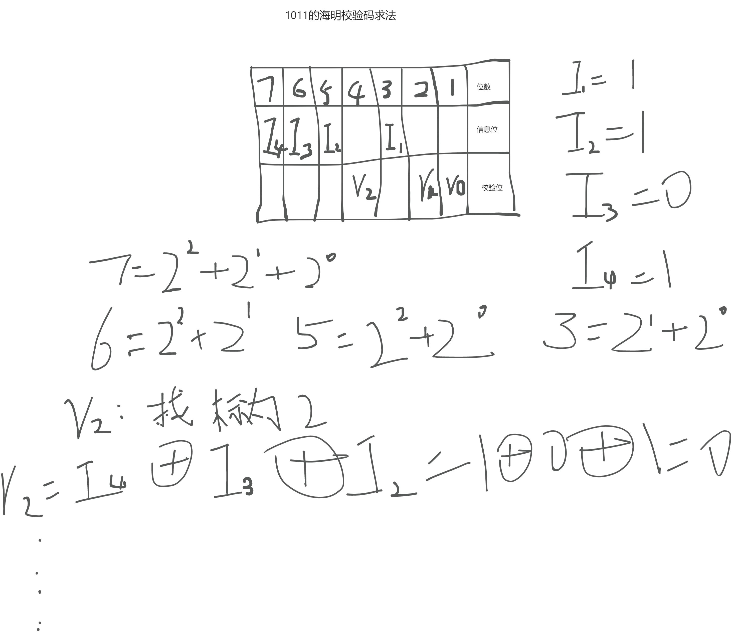 信息位校验码的关系 : 信息位x位,校验码r位情况下:2^r >= x + r +1