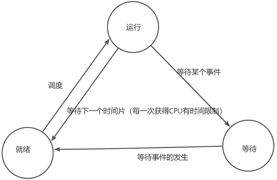 三个状态:运行,等待,就绪