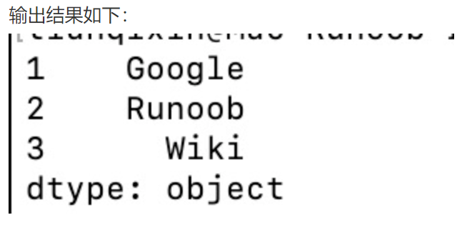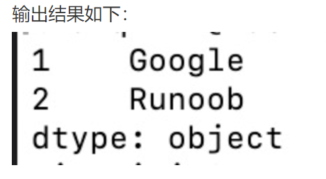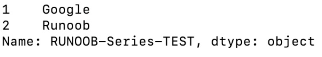 myvar = pd.Series(sites, index = [1, 2], name="RUNOOB-Series-TEST" )
