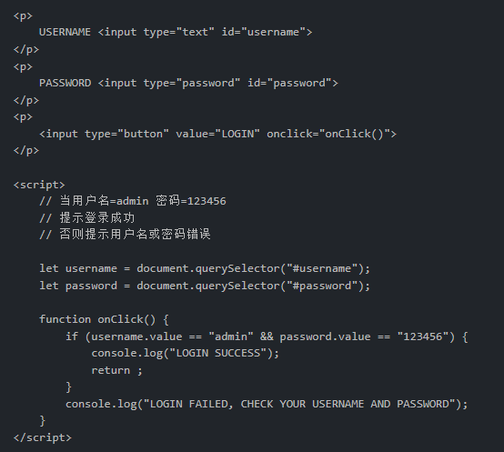 alert(); 警告弹窗confirm(); //let result = confirm(xxx) //有返回值的 确认按钮和取消按钮 代表true和false prompt(); 带有文本框的弹窗 //有返回值 值就是文本框内输入的内容 prompt("ENTER YOUR USERNAME","DESCRIPTION") //DESC 可有可无