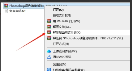 将插件包下载到电脑本地,使用解压工具进行解压打开