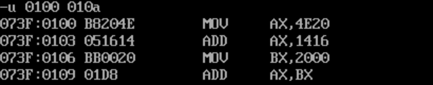 U命令反汇编验证E命令写入结果的正确