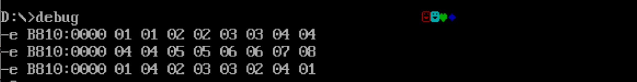 先使用 e 命令修改 内存单元0022:0~0022:f 中的数据,及修改后查看是否正确写入的操作