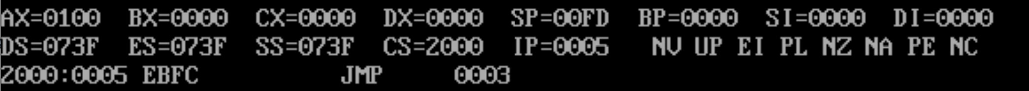 原因解释: 经过测试发现,在栈顶的数字对应着CS IP和AX,但测试中BX并不在这些地方,初步猜测系统使用栈空余的位置暂存了AX,CS,IP等数据的数值。