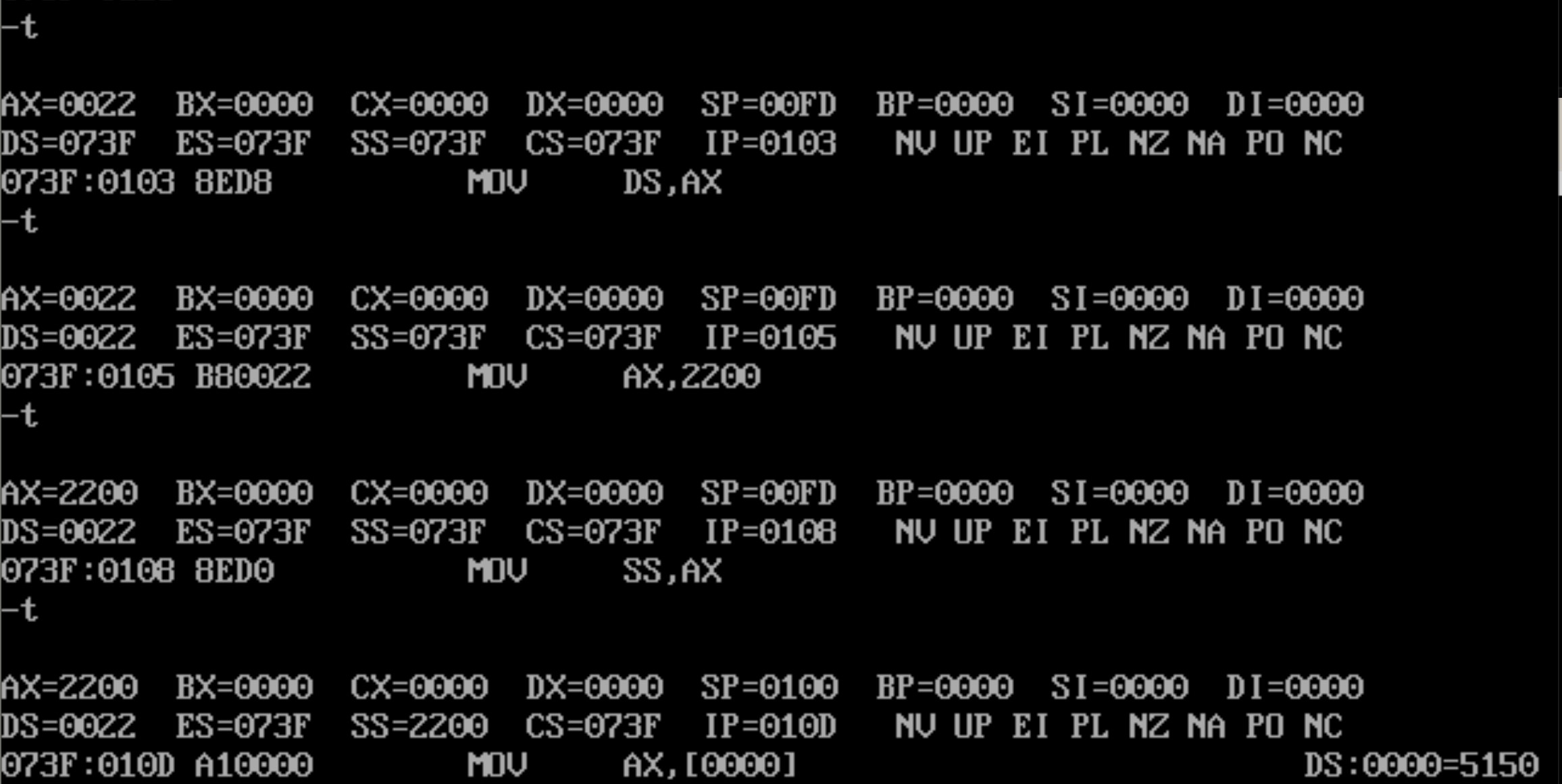 mov ax,[0] ;ax = 5150