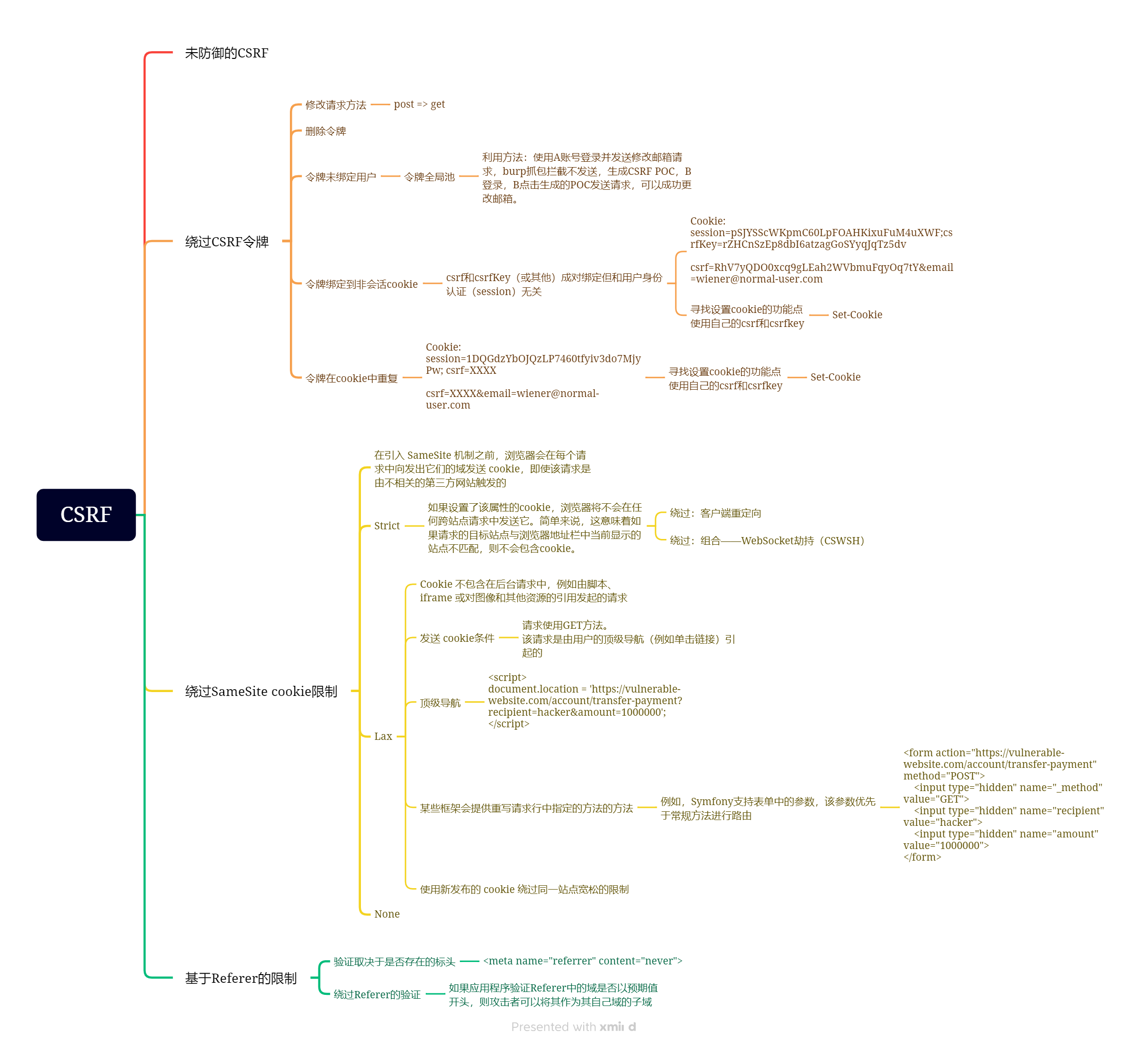 攻击者可以使用自己的帐户登录到应用程序,获取有效的csrf令牌和关联的cookie,利用cookie设置行为将其cookie放入受害者的浏览器中,并在其CSRF攻击中将其令牌提供给受害者。