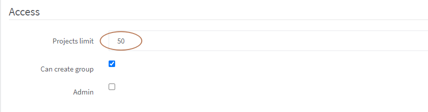 Projects limit为每个用户创建项目的数量,修改projects limit之后点击保存。(默认为10个)