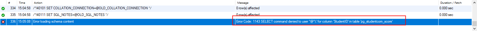 MySQL视图导入报错,[Err] 1143 - SELECT command denied to user 'XX'@'%' for column 'XXX' in table 'XX'