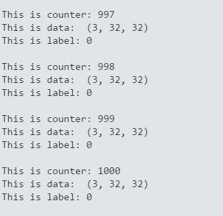 import caffeimport lmdblmdb_env = lmdb.open('mylmdb')lmdb_txn = lmdb_env.begin()lmdb_cursor = lmdb_txn.cursor()datum = caffe.proto.caffe_pb2.Datum()i=0for key, value in lmdb_cursor: i=i+1 datum.ParseFromString(value) label = datum.label data = caffe.io.datum_to_array(datum) print "This is counter:",i print "This is data: ",data.shape print "This is label:",label,"\n" |