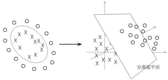 数据在原始空间(称为输入空间)线性不可分,但是映射到高维空间(称为特征空间)后很可能就线性可分了。