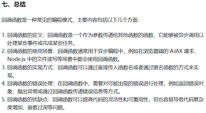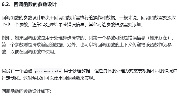 回调函数是一种常见的编程技术,它可以在异步操作完成后调用一个预定义的函数来处理结果。回调函数通常用于处理事件、执行异步操作或响应用户输入等场景。