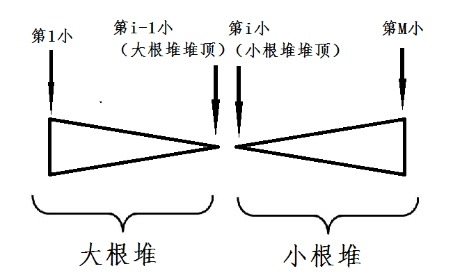 - 维护大根堆中的元素只能有\(i-1\)个,即每当个数超出时,将大根堆的堆顶移至小根堆中。