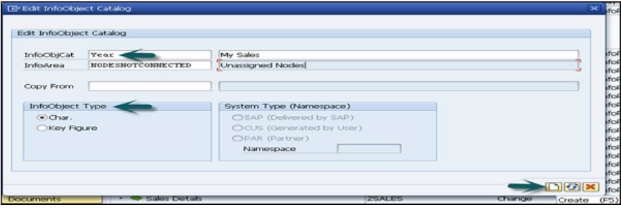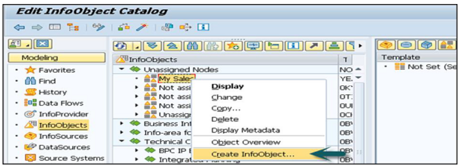 选择我的销售InfoObject目录→右键单击→创建InfoObject。